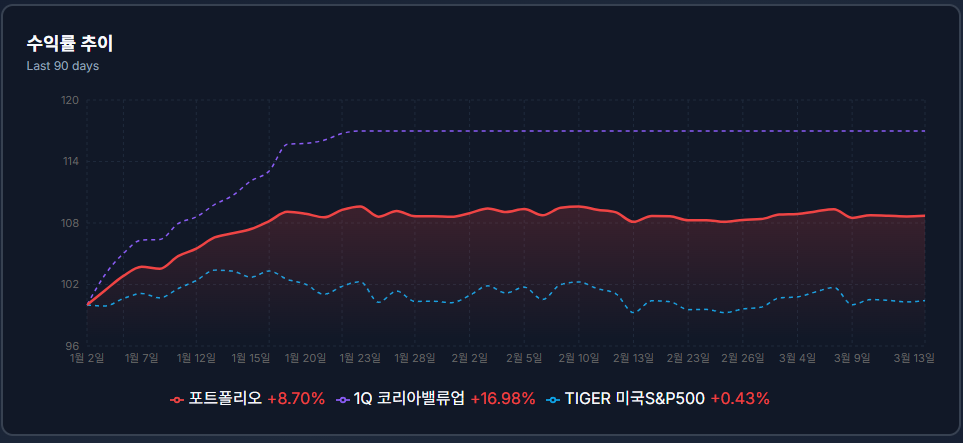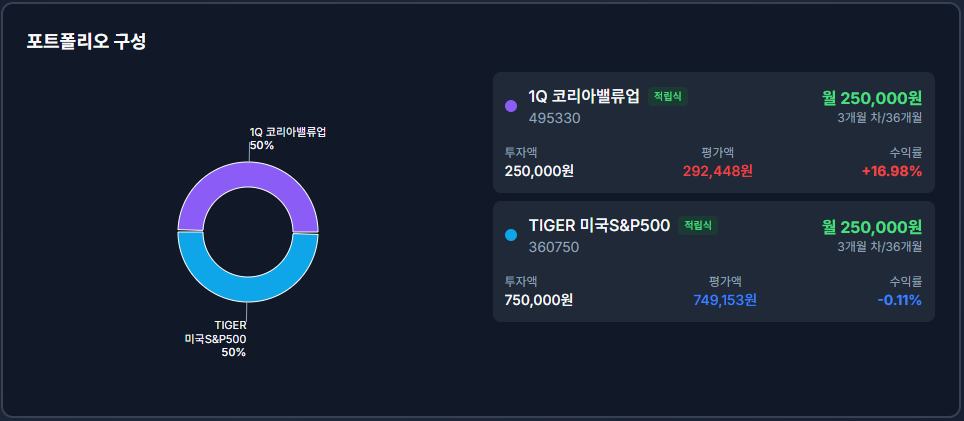 • 포트 구성: 국내 기업 가치 제고(밸류업)와 미국 대표 우량주(S&P500)의 5:5 하이브리드 조합